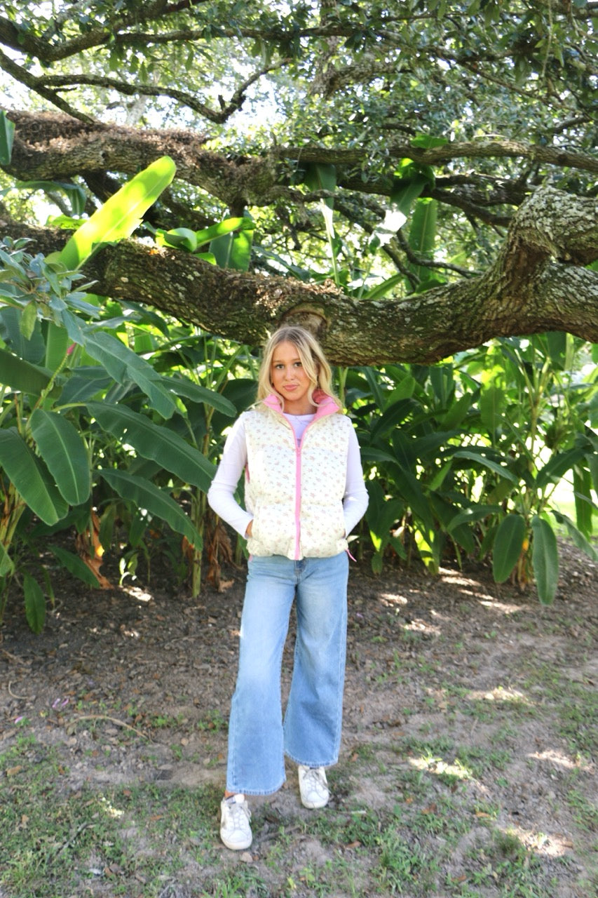 Stay warm and stylish in the Wildflower Vest! A floral printed puffer with a mock neck and adjustable hem for the perfect shape. Designed with side pockets and a front zipper, it’s the ideal layer for chilly fall days and cozy weather looks.
